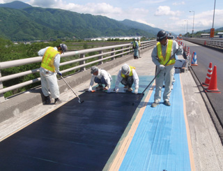 床版舗装の補修には、鋼床版舗装を電磁誘導加熱で静かに剥ぎ取るスマートリムーブ工法があります。コンクリート床版の場合は、コンクリート床版上面の炭素繊維シート工法も有効です。